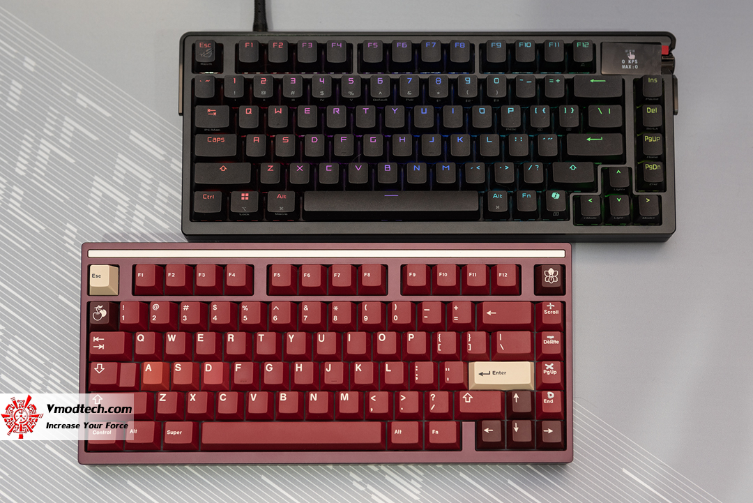 อันนี้เป็นรูปเปรียบเทียบระหว่าง ROG Azoth Extreme กับคีย์บอร์ด 75% Mode Sonnet ในระดับราคา 300 USD โดยประมาณ (ยังไม่รวมสวิทซ์และคีย์แค๊ป)