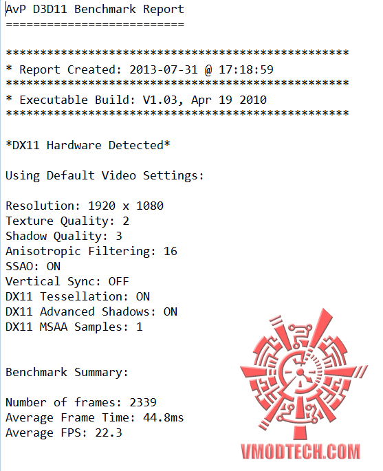 AVP DX11 22.3เฟรมเรตครับ ใช้งานจริงควรลดกราฟฟิกลงมาครับ