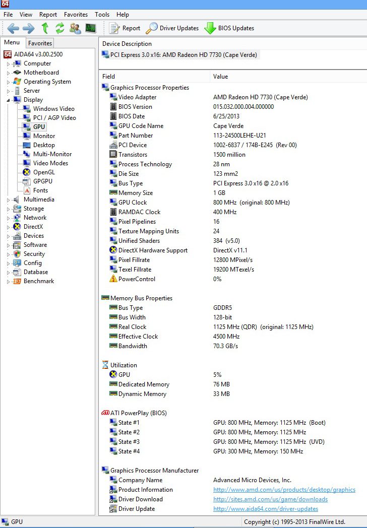 SAPPHIRE HD 7730 1GB GDDR5 Default