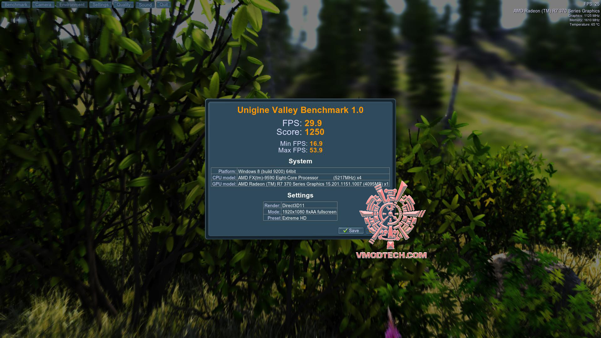 Unigine Valley 1.0 เฟรมเรตอยู่ที่ 29.9เฟรมเรตครับ
