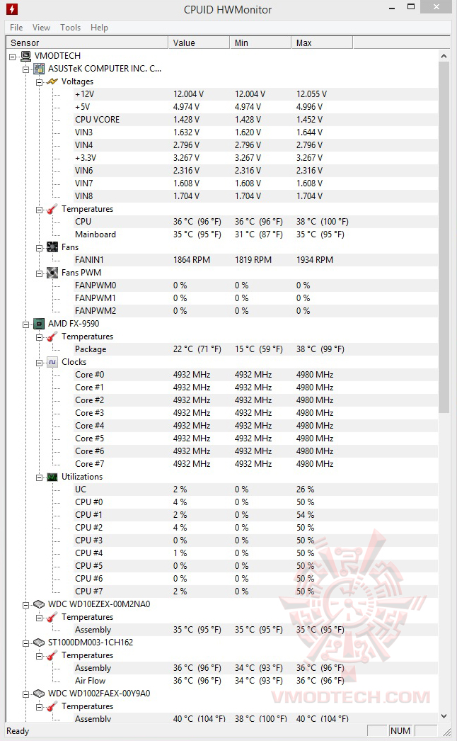 วันนี้ในการทดสอบผมลองต่อทดสอบกับเมนบอร์ด ซึ่งรอบพัดลมทำงานอยู่ในช่วง 1800-2000รอบต่อนาที ซึ่งก็เป็นไปตามสเปกที่เคลมกันเอาไว้ครับ