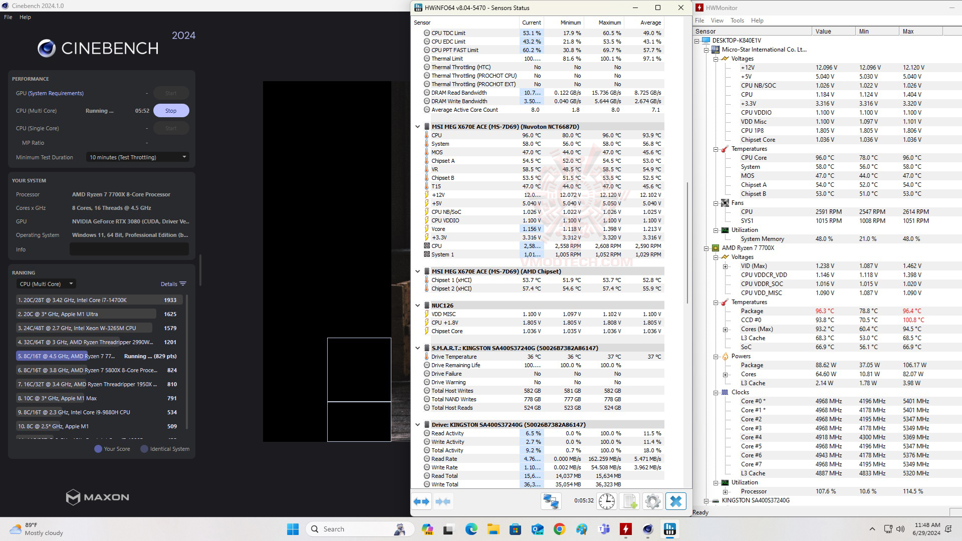 ทดสอบแบบโหดๆ แบบ Strees Test กับ Cinebench 2024 ระยะเวลา 5นาทีเต็ม ระบบการจ่ายไฟของซีพียูก็จ่ายไฟได้นิ่งดีครับโหลดใช้งานแบบ Stress Test กันทดสอบกันยาวๆ แบบต่อเนื่องไม่มีดับหรือวูปให้เห็นครับ