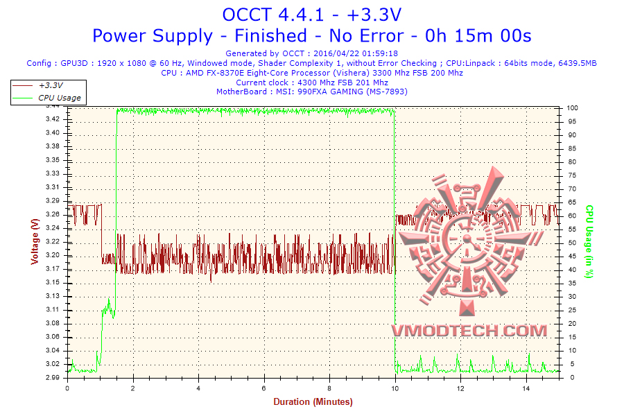 ไฟ +3.3V  ไม่มีโหลดอยู่ที่ประมาณ 3.28V ระหว่างมีโหลดตกลงมานิดหน่อยครับที่ 3.17V-3.22V เท่าน้นเองถือว่าน้อยมากๆเลยครับ ส่วนความนิ่งนี่สุดยอดครับ ค่าเบี่ยงเบนที่ขยับขึ้นลงเพียงแค่ 0.04เท่านั้นเองครับนิ่งเยี่ยมดีมากๆ ดูแล้วใกล้เคียงกับตัว 800W ที่ผมทดสอบผ่านไปครับ ทำได้ดีเยี่ยมมากๆ