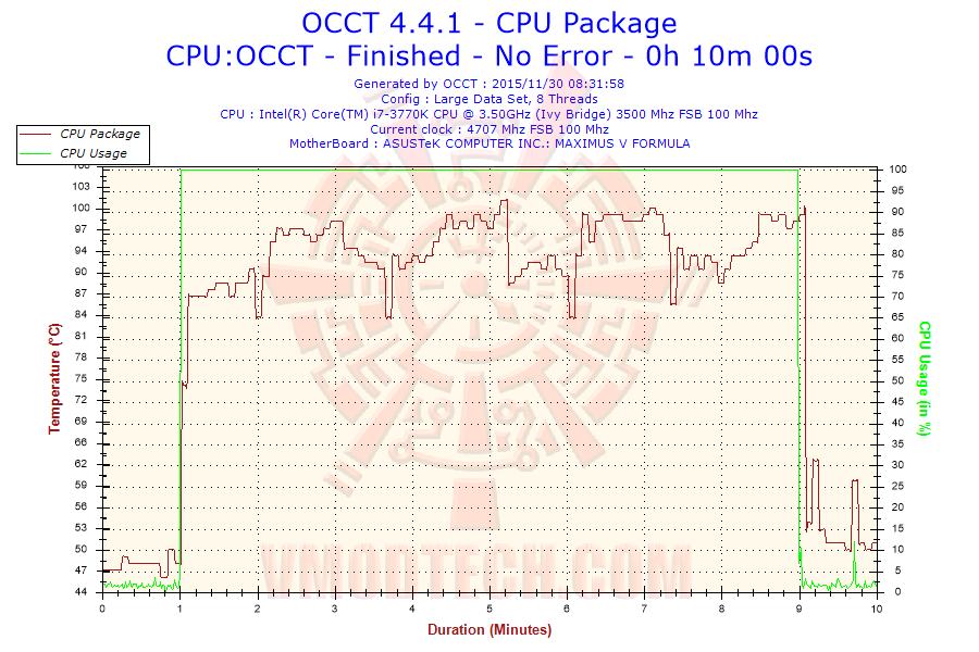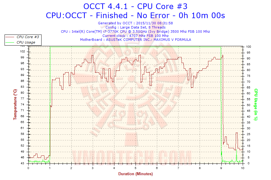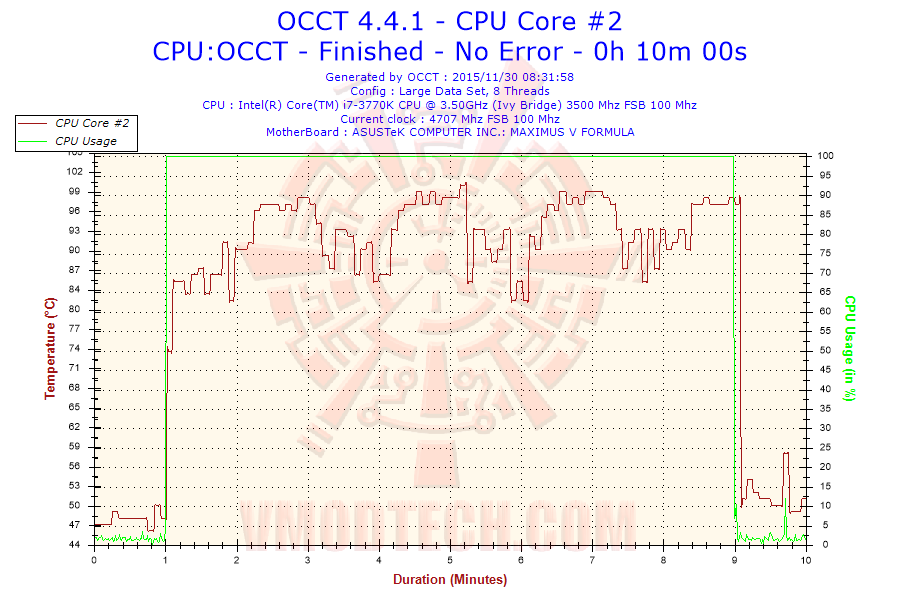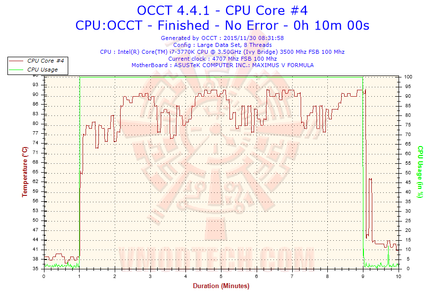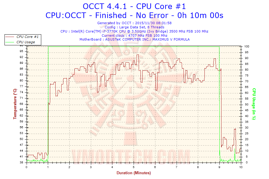 จะเซ็ต OCCT 4.4.1 ที่โหมด CPU OCCT Large Data Set เป็นเวลา 10 นาที วอร์มอัพหัวท้ายอย่างละ 1 นาทีครับ