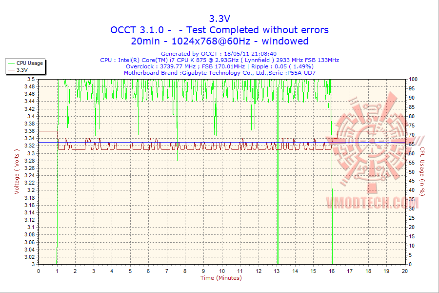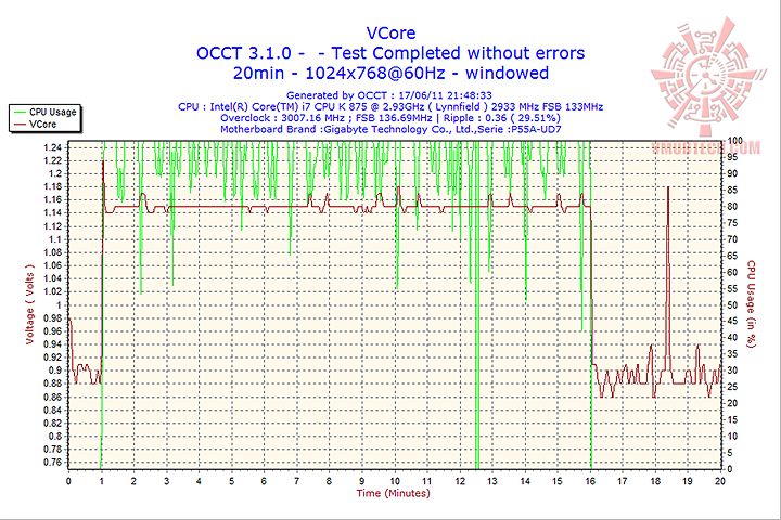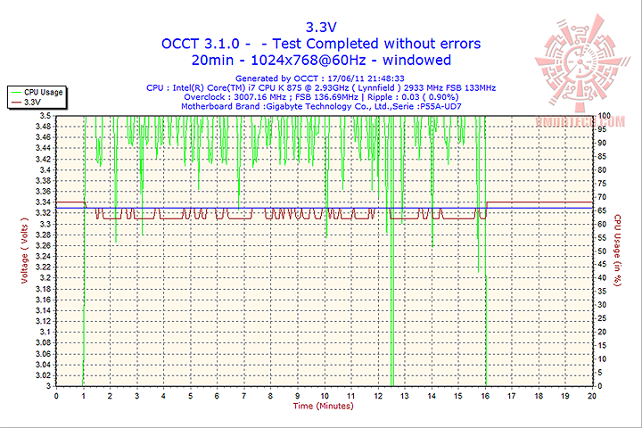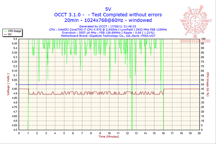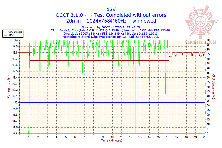 เจอเข้ากับ 80 Plus Gold เข้าให้ ชุดนี้เรียกไฟจากเต้ารับแค่ 442 วัตต์เท่านั้นเองครับที่ Full load ด้วย OCCT น้อยจัง