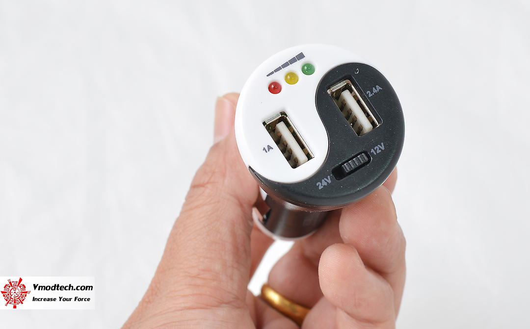 ช่องเสียบชาร์จแบตแบบ USB สองช่อง แบ่งเป็น 1 แอมป์ และ 2.4 แอมป์ครับ ภายในก็จะมี fuse ขนาดห้าแอมป์ติดตั้งอยู่เช่นกัน TP-15TC นั้นสามารถจ่ายกระแสได้สูงสุด 3 แอมป์ครับ