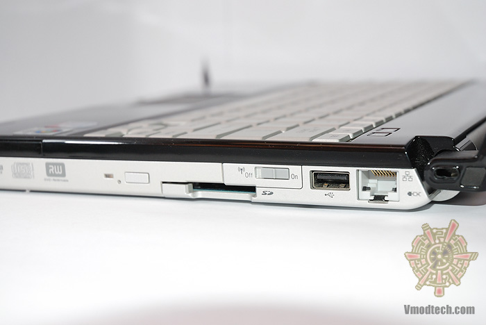 ด้านขวามือของเครื่อง มีสวิช เปิดปิด WiFi (ส่วน Bluetooth ต้องเปิดปิด ผ่าน management ในวินโดวส์) ยูเอสบี การ์ดรีดเดอร์ และพอร์ตแลน รวมไปถึง DVD-RW ด้วยครับ
