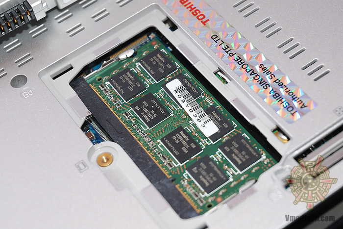 ที่สามารถถอดฝาออกมาได้ก็มีแต่ Ram เท่านั้นครับ จะเห็นว่ามีสลอตเพียงสลอตเดียว ที่ติดตั้งมาให้ ขนาดเป็น 2GB ส่วนอีก 1GB นั้นเป็นแรมออนบอร์ดครับ