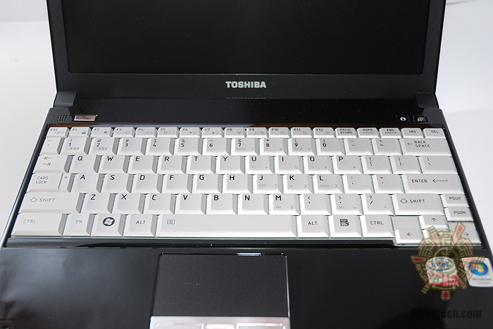 คีย์บอร์ด ถ้าได้ลองสัมผัสแล้วอาจจะหลงรักได้ (อิอิ ซะงั้น) เพราะว่าระยะห่างของแต่ละคีย์ค่อนข้างทำออกมาได้ดี แต่อาจจะติดตรงที่เวลาพิมพ์สัมผัสแล้ว ตำแหน่งของปุ่มบางปุ่ม การเหลื่อมล้ำกัน จะไม่ค่อยเหมือนคีย์บอร์ดทั่วๆไปนัก สืบเนื่องจากจอที่มีขนาดเพียง 12 นิ้วเท่านั้นเองครับ อ้อ เสริมอีกอย่างหนึ่ง ได้ข่าวมาว่า คีย์บอร์ดของโตชิบ้ารุ่นนี้ "กันน้ำ" ด้วยนะครับ อิอิ อันนี้ก็ไม่อยากให้เอาไปลองกัน (เพราะผมเองยังไม่กล้าลองนั้นเองครับ หุหุ)