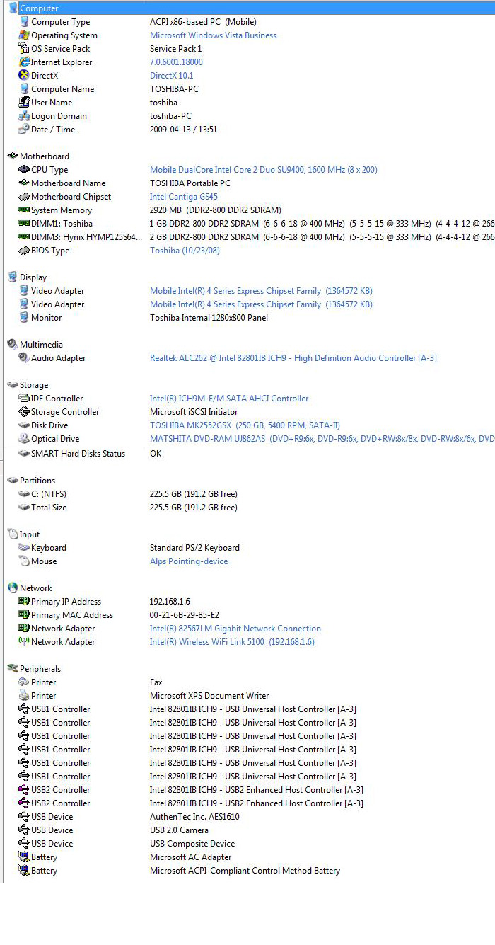 ภาพจากโปรแกรม Everest แสดงรายละเอียดของเครื่อง
