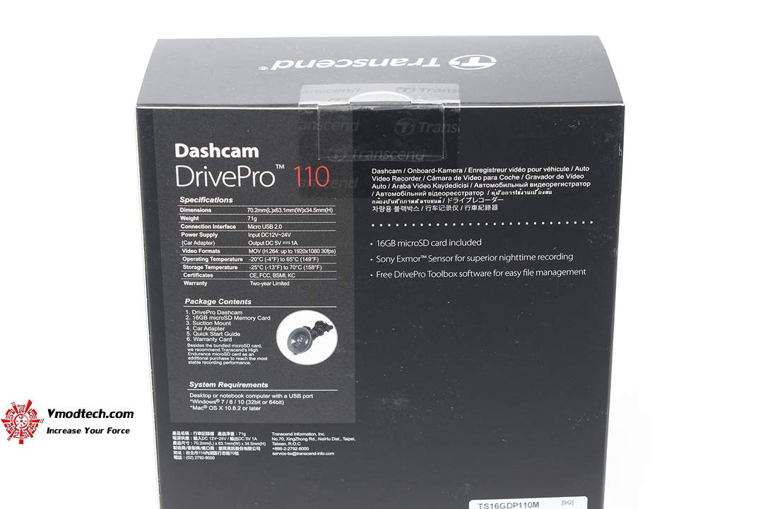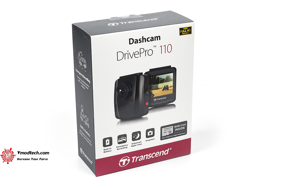 แพกเกจ Dashcam DrivePro 110 นั้นมาแบบง่ายๆบนพื้นฐานสีขาว ด้านหน้าและด้านหลังนั้นมีการระบุฟังก์ชั่นการทำงานหลักๆเอาไว้ให้พิจารณา