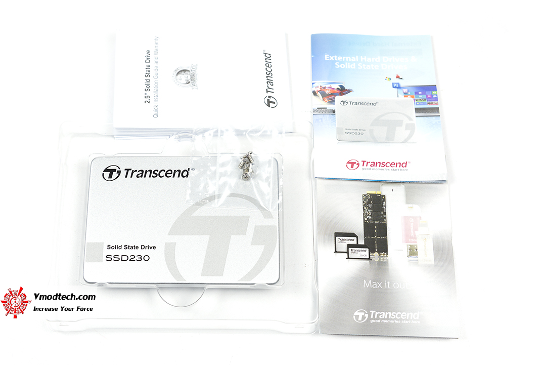 ภายในนั้นจะมีพลาสติกขึ้นรูปเพื่อป้องกันตัว SSD ซึ่งออกแบบมาได้ดีครับ แน่นหนาและกันกระแทกได้เป็นอย่างดีมาพร้อมกับสกรูยึดกับเคสรวมถึงคู่มือ โบร์ชัวร์ของผลิตภัณฑ์ Transcend