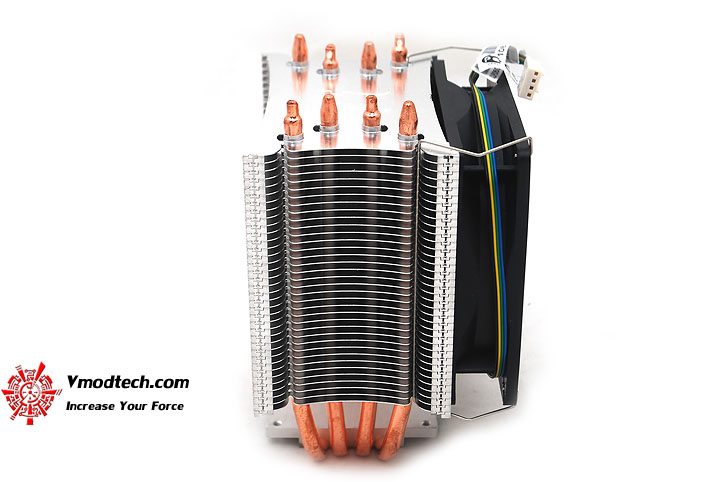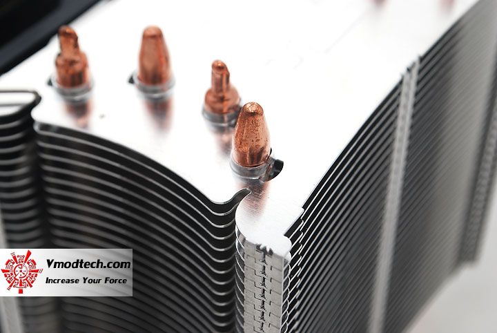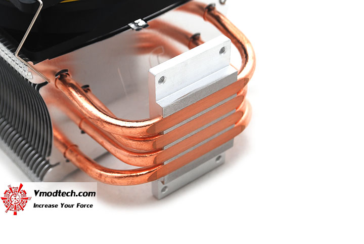 ตรงนี้เป็นฐานในส่วนที่สัมผัสกับ CPU ครับ จะเห็นว่ามีท่อ Heat Pipe ขนาด 6 มิลลิเมตรจำนวนสี่ท่อฝังอยู่บนฐานเลย
