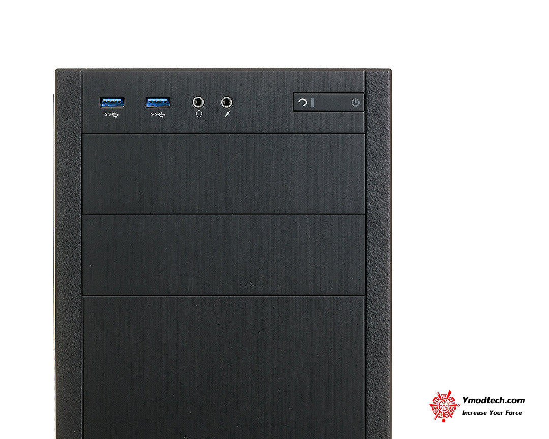 ด้านบนสุดเป็น Front Panel มี Power Switch, Reset Switch, Audio, Mic, USB 3.0 2 ช่อง