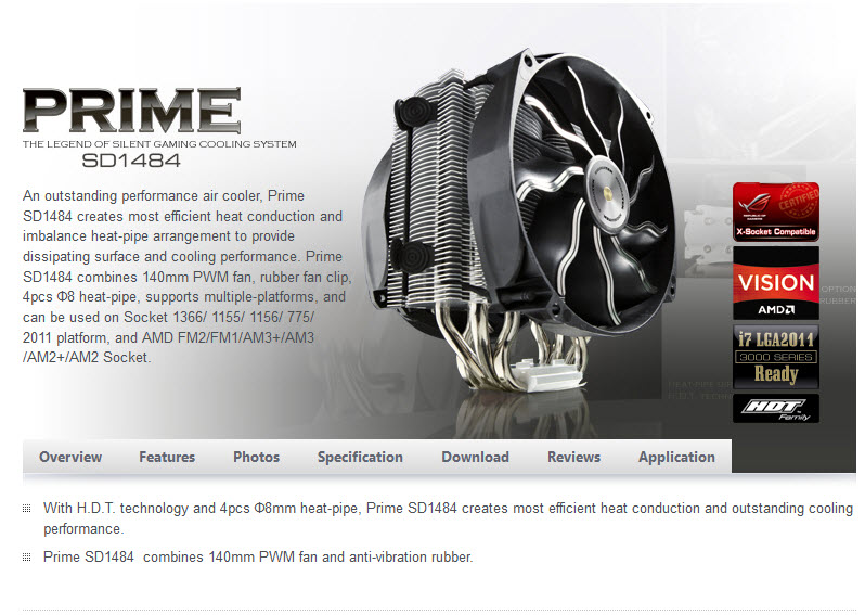 ..........สวัสดี ครับอากาศอุ่นสบายตับแลบแบบนี้ ไม่มีอะไรจะเหมาะสมเท่ากับการอาบน้ำทาแป้งเย็นทางูนั้งโกรกพัดลม OverClock CPU เล่นอีกแล้วนะครับ วันนี้ผมก็เลยถือโอกาส งัด CPU Cooler ที่ได้รับมาตัวใหม่ล่าสุดออกมาทดลองกันไปในตัวเลยนั้นก็คือเจ้า XIGMATEK-Prime SD1484 ซึ่งแบรนด์อย่าง XIGMATEK นั้น Vmodtech เราก็เคยได้ทำการทดสอบ Chassis ไปบ้างแล้วนะครับก็ถือว่าทำผลงานได้น่าพอใจทีเดียว วันนี้มาลองชม CPU Cooler กันบ้างดีกว่าช้าอยู่ทำไมไปชมกันเลยดีกว่า แต่ก่อนอื่นต้องไปชมรายละเอียดจากเว็บไซต์ผู้ผลิตกันก่อนครับ