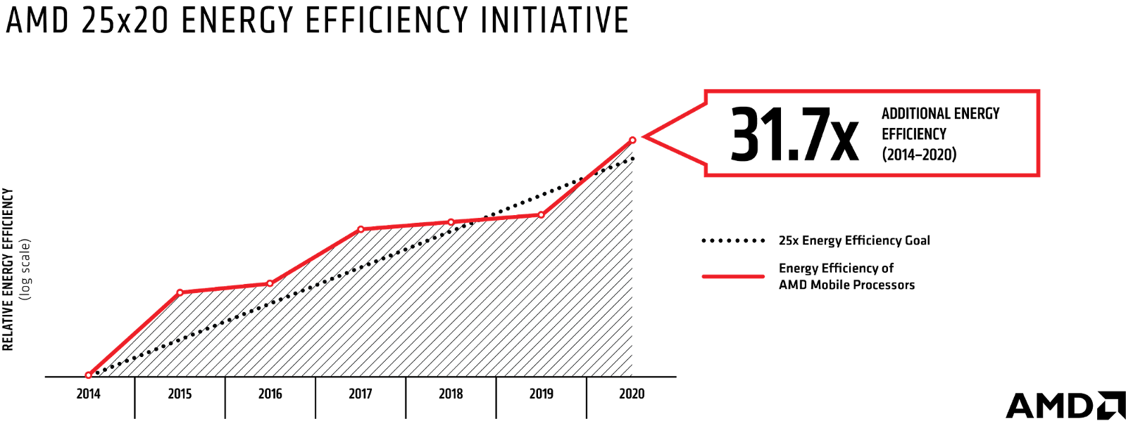 AMD บรรลุความสำเร็จเหนือเป้าหมายที่ตั้งไว้ใน 6 ปี ในการพัฒนาประสิทธิภาพการใช้พลังงานของโมบายโปรเซสเซอร์ที่เพิ่มขึ้นกว่า 25 เท่า