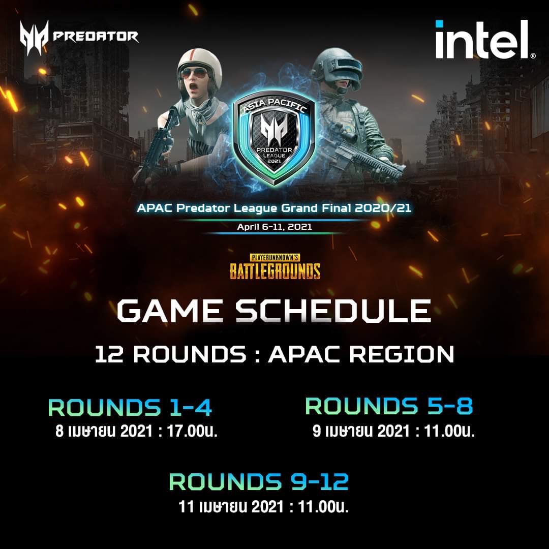 กรุงเทพฯ, ประเทศไทย (5เมษายน 2564) - การแข่งขัน Asia-Pacific Predator League 2020/21รอบชิงชนะเลิศ การแข่งขันออนไลน์เต็มรูปแบบจะเริ่มการแข่งขันตั้งวันที่ 6 เมษายนถึง 11 เมษายน โดยมีทีมที่ผ่านเข้ารอบ Grand Final จากทัวร์นาเมนต์ Asia Pacific Predator League 2020 และทีมรับเชิญจากเอเซอร์ร่วมแข่งขันในศึกทัวร์นาเมนต์นี้ ในปีนี้การแข่งขันได้แบ่งออกเป็น4 ทัวร์นาเมนต์ย่อย โดยแบ่งเป็นเกม PUBG และ Dota 2 เกมละ 2 ทัวร์นาเมนต์ โดยแต่ละทีมจะเข้าแข่งขันตามรายการที่ได้ถูกกำหนดไว้ล่วงหน้า การแข่งขันAsia Pacific Predator League 2020/21มีเงินรางวัลสำหรับผู้ผ่านการคัดเลือกและผู้ชนะของการแข่งขันย่อยทั้ง 4 รายการมูลค่ารวมกว่า400,000 เหรียญสหรัฐฯ หรือกว่า 12 ล้านบาทผู้ชนะของแต่ละทัวร์นาเมนต์ย่อยจะได้รับโล่เกียรติยศ Asia Pacific Predator League Shield และผลิตภัณฑ์จากAcer Predator ติดตามเบื้องหลังการทำงาน การฝึกซ้อมของทีมตัวแทนที่จะช่วยเพิ่มดีกรีร้อนแรงกับการกลับมาที่น่าตื่นเต้นของทัวร์นาเมนต์นี้ พร้อมรายชื่อทีมที่เข้าแข่งขันทั้งหมด รวมถึงข้อมูลเพิ่มเติมเกี่ยวกับตารางการแข่งขันและโปรแกรมต่างๆ ได้ที่www.predator-league.comหรือโซเชียลมีเดียของเอเซอร์ที่ Facebook, Instagram, และTwitter