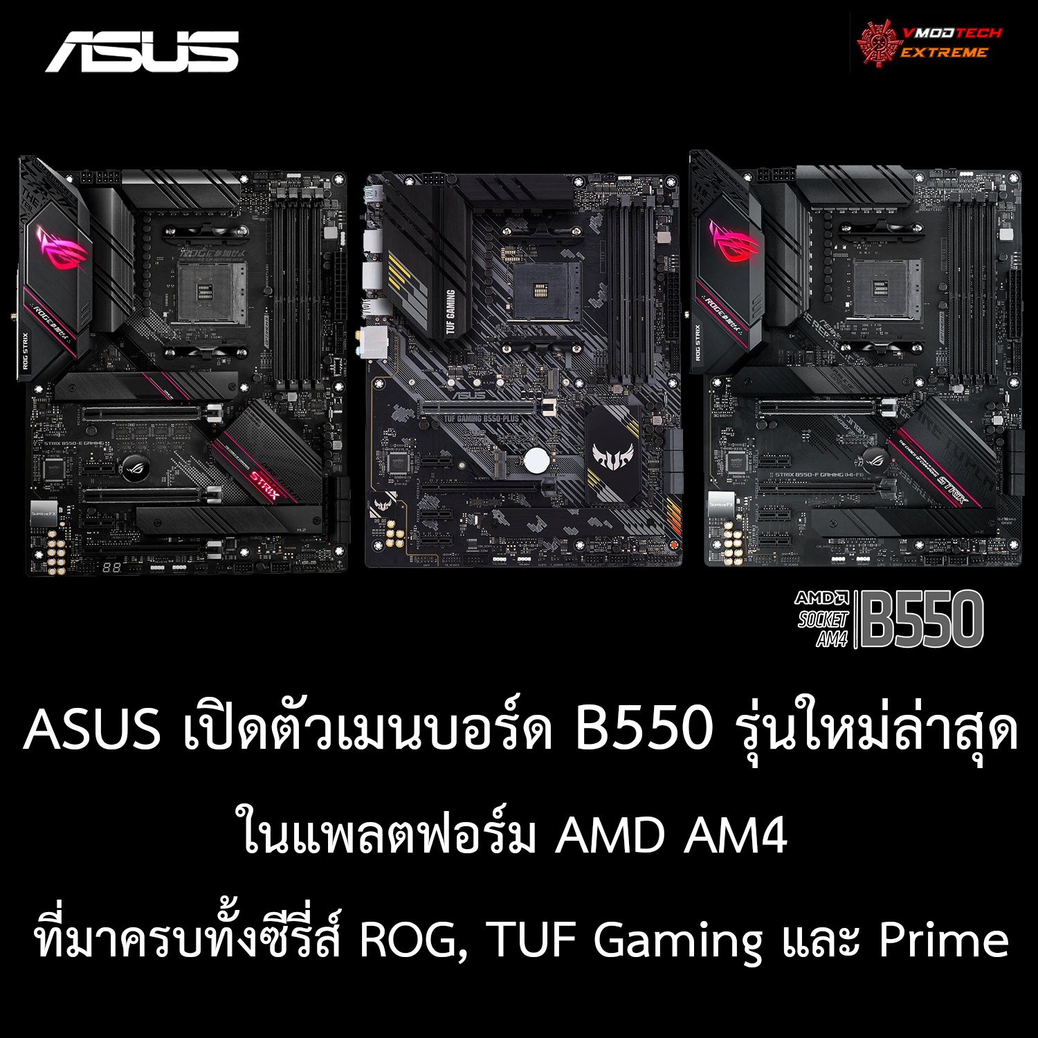 วันนี้ก็มีข่าวจากฝั่ง ASUS มาให้เราได้ชมกันครับกับการประกาศเปิดตัวเมนบอร์ดชิบเซ็ต B550 รุ่นใหม่ล่าสุดอย่างเป็นทางการ โดยใช้งานร่วมกับซีพียู AMD RYZEN 3rd Gen ซีรี่ย์ในตระกูล RYZEN 3000ซีรี่ย์ ซึ่งมาในแพลตฟอร์ม AM4 โดยมีรุ่นซีรี่ส์ ROG, TUF Gaming และ Prime เปิดตัวกันอย่างครบครัน เราไปชมรูปร่างหน้าตาเมนบอร์ดกันเลยครับ