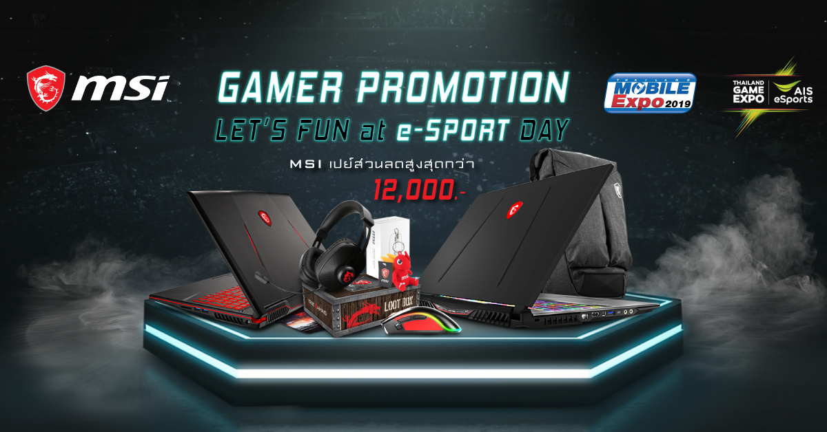 MSI เปย์ส่วนลดสูงสุดกว่า 12,000 บาท ในงาน e-Sport แห่งชาติ ที่ Thailand Game Expo และ Thailand Mobile EXPO 30 พ.ค. - 2 มิ.ย. นี้
