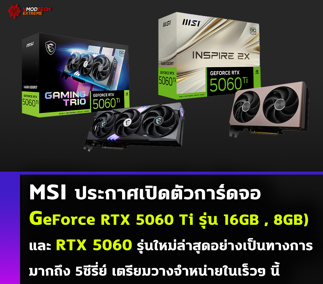MSI ประกาศเปิดตัวการ์ดจอ NVIDIA GeForce RTX 5060 Ti (รุ่น 16GB และ 8GB) และ RTX 5060 รุ่นใหม่ล่าสุดอย่างเป็นทางการ
