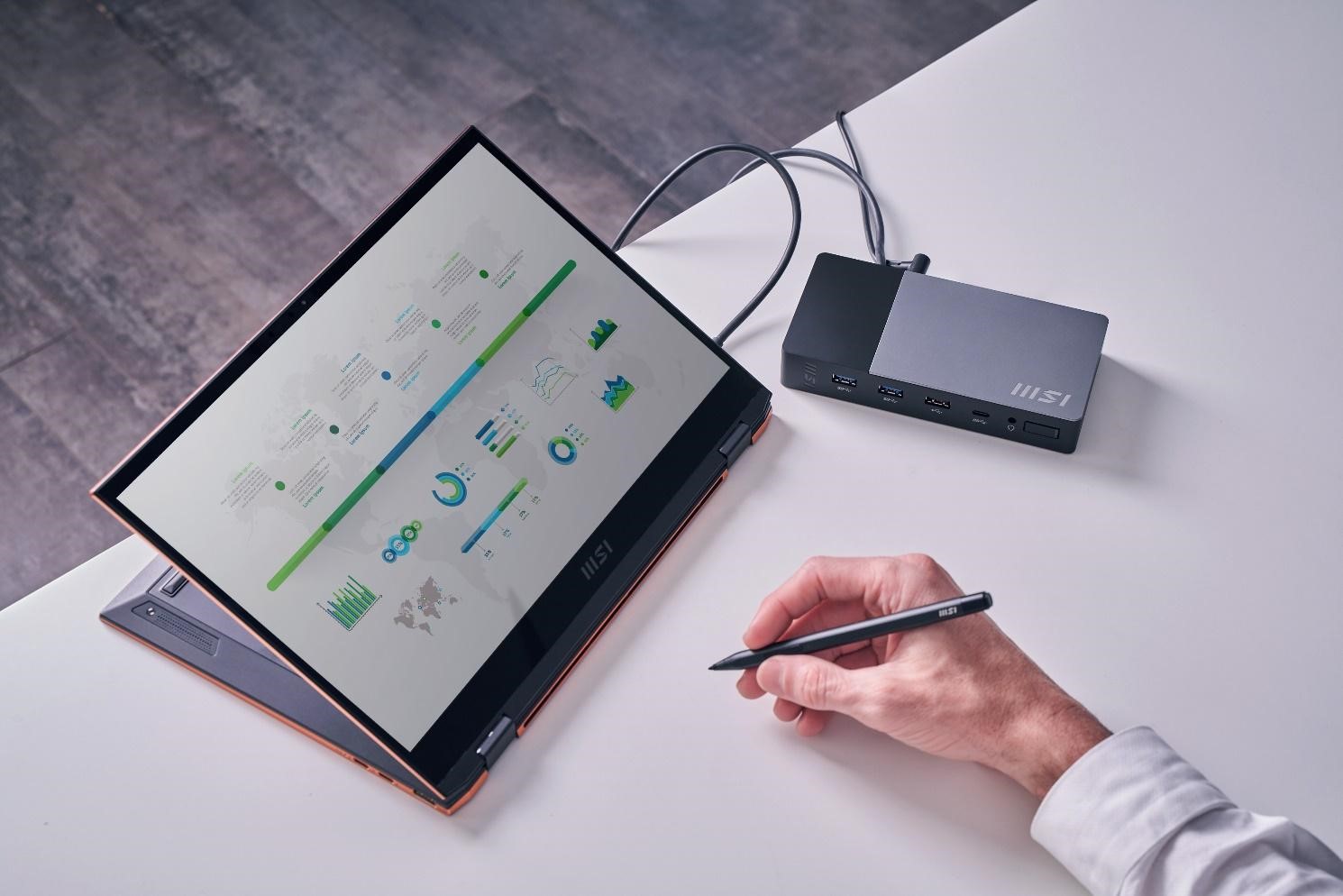 ในงานเปิดตัวแบบเสมือนจริงนั้น ยังมีการเปิดเผยเคล็ดลับสำหรับการจัดระเบียบที่ดีในการทำงาน ตัวช่วยในการจัดการพอร์ตการเชื่อมต่อ MSI Docking Station Gen 2 รองรับการทำงานหลากหลายประเภท และลดปริมาณสายการเชื่อมต่อทั้งหมดให้เหลือเพียงแค่เส้นเดียว รองรับการแสดงผลสูงสุดถึงระดับ 4K UHD มีการรองรับการส่งภาพสูงสุดที่ 3 หน้าจอ เป็นต่อด้วยพอร์ต USB อีกมากมาย ส่งผ่านพลังงานได้สูงสุด 100 วัตต์ ยิ่งไปกว่านั้น MSI USB-C Docking Station Gen 2 ยังสามารถเป็นอุปกรณ์สำหรับองค์กรธุรกิจที่ยอดเยี่ยมโดยการรองรับ MAC address Pass-Through และ PXE Wake-on-LAN (WOL) ที่สามารถตั้งค่าการใช้งานและความเป็นส่วนตัวของเครือข่ายภายในองค์กรได้อย่างมีประสิทธิภาพ ยกระดับจากธุรกิจทั่วไปให้เป็นองค์กรในระดับมืออาชีพ