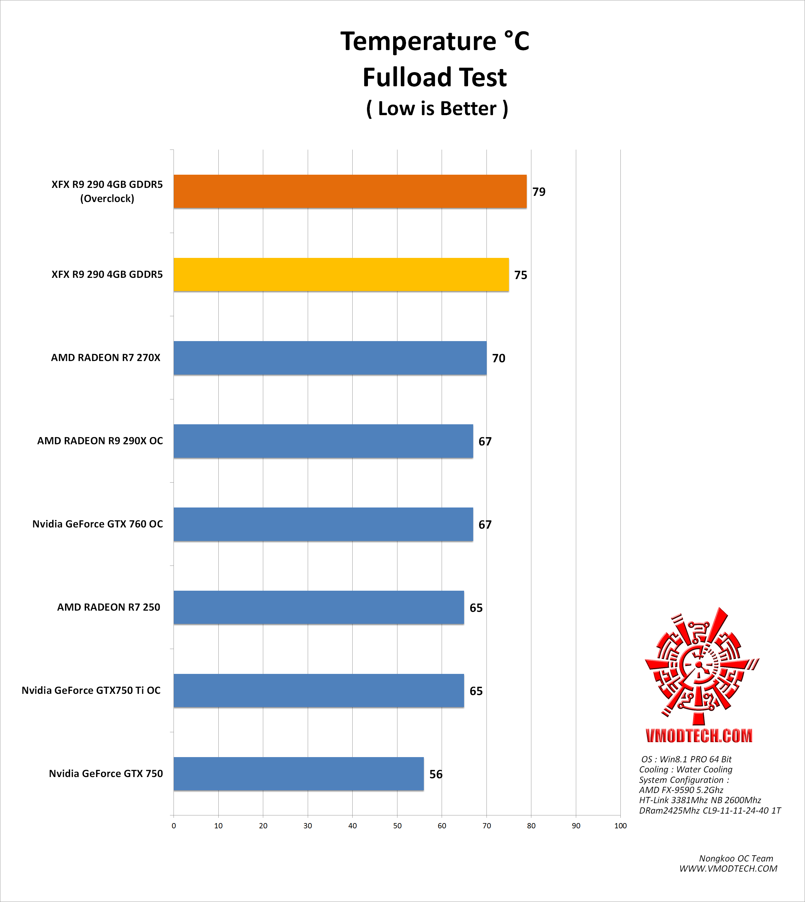 ผ่านกันไปแบบ นิ่งๆใช้งานกันได้จริงครับสำหรับชุดทดสอบ Furmark ที่กดกันแบบเต็มๆ โดยอุณหภูมิในสถานะเดิมๆฟูลโหลดอยู่ที่ 75องศาฯ ส่วนสถานะโอเวอร์คล๊อกฟูลโหลดอยู่ที่ 79องศาฯ ส่วนรอบพัดลมทำงานที่ 100เปอร์เซ็นโดยอุณภูมิห้องราวๆ 32-34องศาฯ