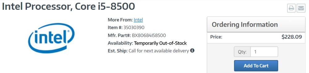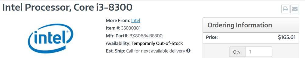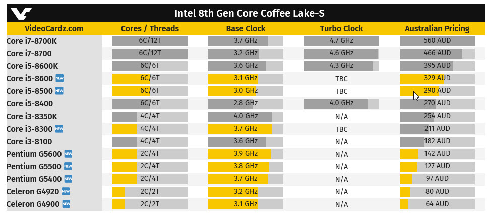 อินเทลจะเริ่มวางจำหน่าย Intel Core i3-8300 และ Core i5-8500 ในเดือนกุมภาพันธ์ 2018 ที่จะถึงนี้