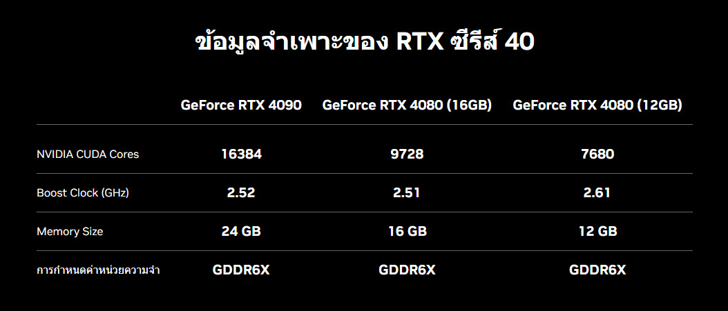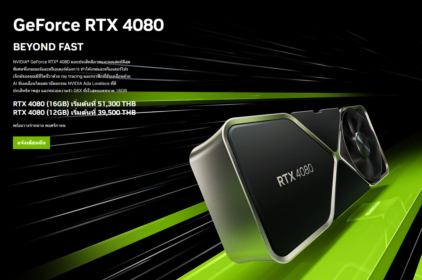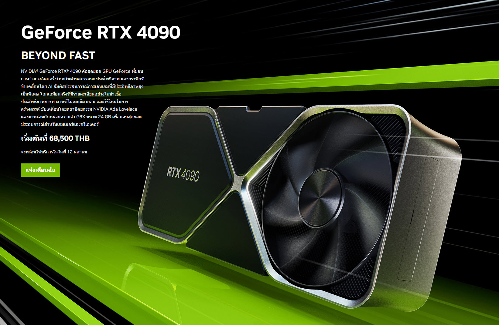 เผยราคาการ์ดจอ NVIDIA GeForce RTX 4090/4080 ราคาในไทย RTX 4090 อยู่ที่ 68,500บาทและ RTX 4080 อยู่ที่ 51,300บาท / 39,500บาท