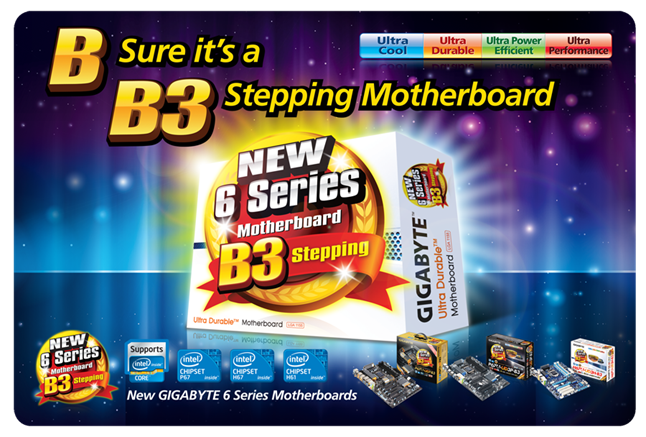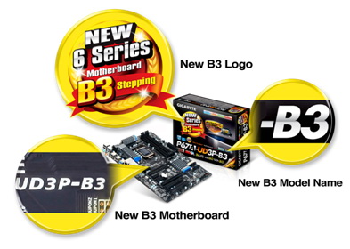 Taipei, Taiwan - February 25, 2011 - GIGABYTE TECHNOLOGY Co., Ltd, อีกหนึ่งในผู้ผลิต Motherboard ชั้นนำ รวมถึงกราฟฟิกการ์ด และคอมพิวเตอร์ hardware อื่นๆอีกมาย วันนี้ได้ทำการประกาศอย่างเป็นทางการว่า จะสามารถส่ง Motherboard Series 6 Stepping B3 ที่ได้ทำการปรับปรุงเรียบร้อยสู่ตลาด ประมาณอาทิตย์หน้าน่าจะได้เห็นกัน