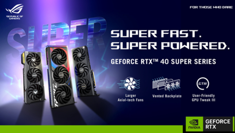 สวัสดีครับ กลับมาพบกับรีวิวการ์ดจอแรงๆจากแบรนด์ ASUS กันนะครับ โดยวันนี้เราจะพามาชม ASUS ROG Strix GeForce RTX™ 4080 SUPER OC Edition ที่มาพร้อมกับคอนเส็ป SUPER Fast. SUPER Powered. GeForce RTX™ 40 SUPER Series