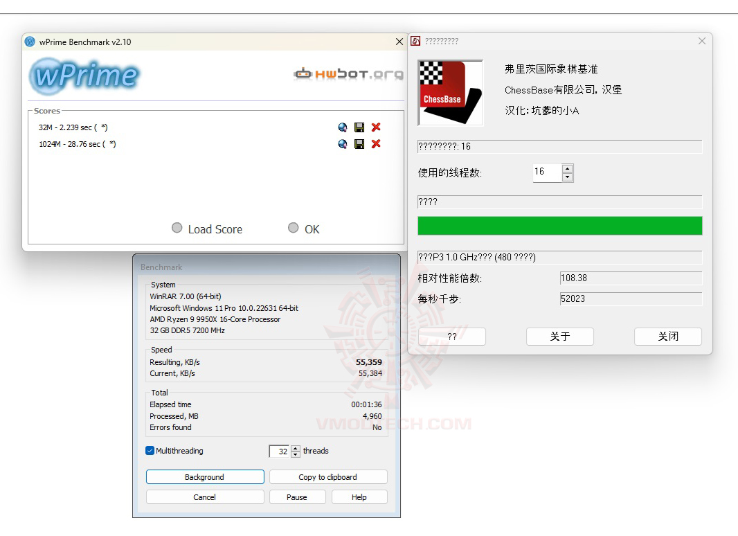 wPrime2.10 , CPUMark99 WINRAR 5.0 Benchmark