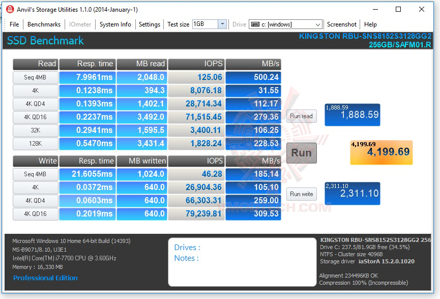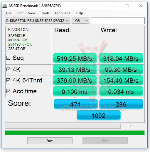 AS SSD คะแนนการอ่านและเขียนอยู่ที่ 519MB/s , 318MB/s แรงเยี่ยมเลยครับส่วน HDD ก็แรงตามมาตรฐาน HDD ครับ