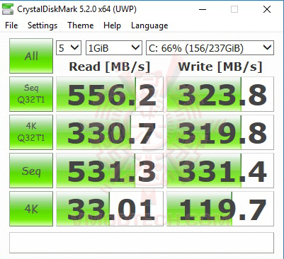 Crytal DiskMark การอ่านเขียนทะลุ 556MB/s , 323MB/s แรงมากครับ