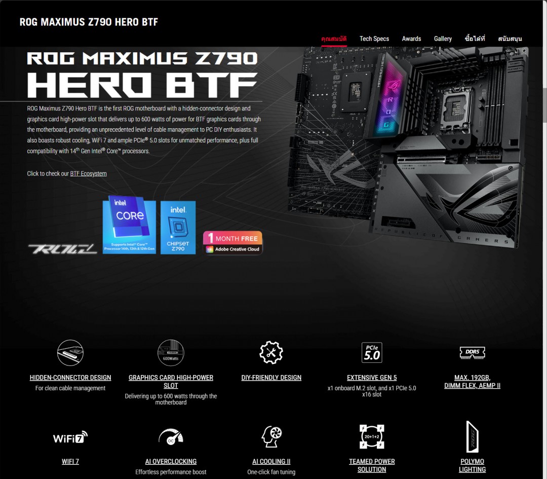 สวัสดีครับ วันหยุดสุดสัปดาห์นี้ผมได้มีโอกาสได้ทดลองเล่นเมนบอร์ด ROG BTF ซึ่งมีจุดเด่นที่ได้ออกแบบการเชื่อมต่อไฟเลี้ยงรวมถึงการเชื่อมต่อทั้ง Storage, interface ต่างๆทั้ง USB หรือ ไฟ RGB โดยวันนี้เราจะมาพูดถึง ROG MAXIMUS Z790 HERO BTF ครับ