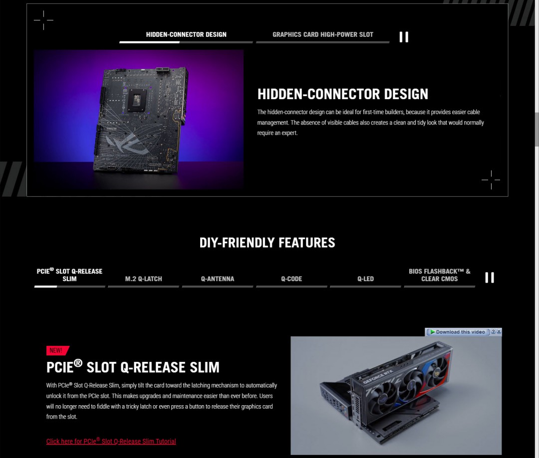 จริงๆเราก็พอจะรู้รายละเอียดพื้นฐานของ ROG MAXIMUS Z790 HERO BTF กันไปแล้วบ้างนะครับว่ามันเป็นบอร์ดที่มีดีไซน์การออกแบบแตกต่างจากรุ่นอื่นพอสมควร นอกเหนือจากการซ่อนพอร์ทการเชื่อมต่อไฟเลี้ยงแล้ว ยังมีสล๊อทสำหรับเสียบไฟเลี้ยงการ์ดจอที่เป็นซีรีย์ BTF เหมือนกัน และสามารถผ่านพลังไฟได้สูงถึง 600 วัตต์ ทั้งนี้ก็เพื่อให้สอดคล้องกับ BTF นั่นเอง นอกเหนือจากนั้นก็มีอีกมากมายครับแต่ผมชอบอีกอย่างก็คือใส่ SSD แบบไม่ต้องไขสกรูครับ แต่บอร์ดนี้จะมีฟังก์ชั่นที่เรียกว่า M.2 Q-Latch ซึ่งสะดวกทีเดียวครับ น่าสนใจครับเดี๋ยวเรามาชมรายละเอียดกันต่อเลย