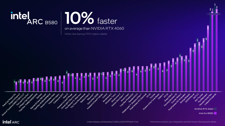 วันนี้ก็มีข่าวจากอินเทลมานำเสนอให้ทุกท่านได้ชมกันครับกับการประกาศเปิดตัวการ์ดจอรุ่นใหม่อย่างเป็นทางการในการ์ดจอ Intel Arc B580 12 GB ราคา $249 และ Intel Arc B570 10 GB ราคา $219 ในรหัส “Battlemage” รุ่นใหม่ล่าสุด ที่เป็นการ์ดจอเกมมิ่งรุ่นที่ 2 ที่เผยประสิทธิภาพแรงกว่า RTX 4060 โดยเฉลี่ย 10% และแรงกว่ารุ่นเดิม Arc 750 มากถึง 24% เตรียมวางขาย 13 ธันวาคมนี้ (Arc B580) และ 16 มกราคม 2025 (Arc B570)