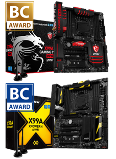 ด้วยการออกแบบที่เหนือธรรมดาและเป็นที่น่าสนใจนั้น MSI X99A GAMING 9 ACK ได้รับรางวัลในหมวด Best Choice Golden Award in the Gaming และ Entertainment ทางด้านมาเธอร์บอร์ด MSI X99A XPOWER AC นั้นได้รับรางวัลในหมวด Best Choice Award in the Computer และหมวด System ที่ไม่ประณีประณอมสำหรับความสามารถในการโอเวอร์คล๊อกเป็นที่ยืนยันได้ว่า MSI นั้นพร้อมที่จะนำมาเธอร์บอร์ดที่ดีที่สุดสำหรับเกมส์มิ่งและโอเวอร์คล๊อก รวมถึงเป็นรายแรกที่นำเสนอคุณลักษณะพิเศษของการใช้งาน USB 3.1 เข้าไปในมาเธอร์บอร์ดเพื่อนำเสนอสู่ตลาดผู้ใช้งานด้วย.