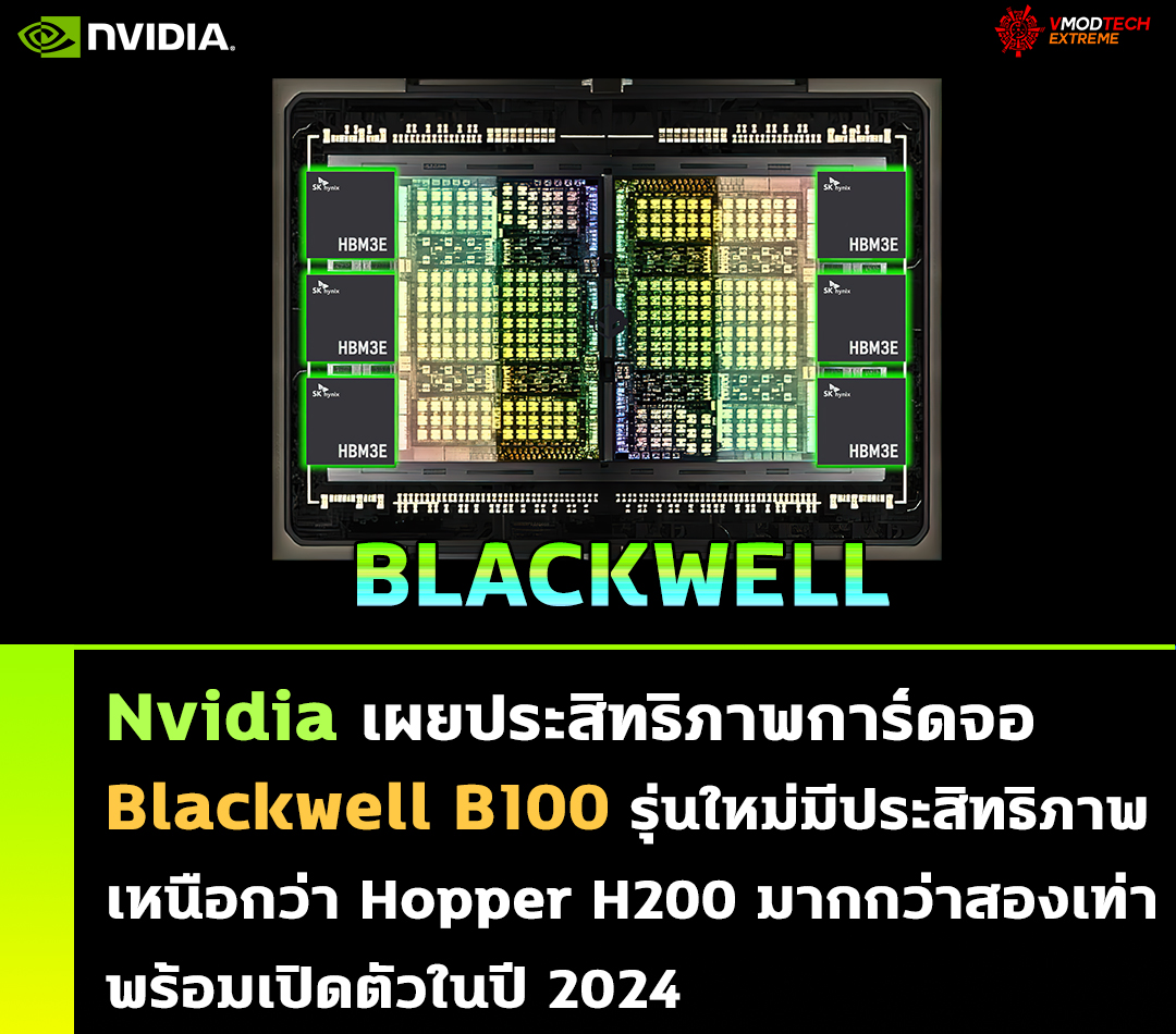 Nvidia เผยประสิทธิภาพการ์ดจอ Blackwell B100 รุ่นใหม่มีประสิทธิภาพเหนือกว่า Hopper H200 มากกว่าสองเท่าพร้อมเปิดตัวในปี 2024