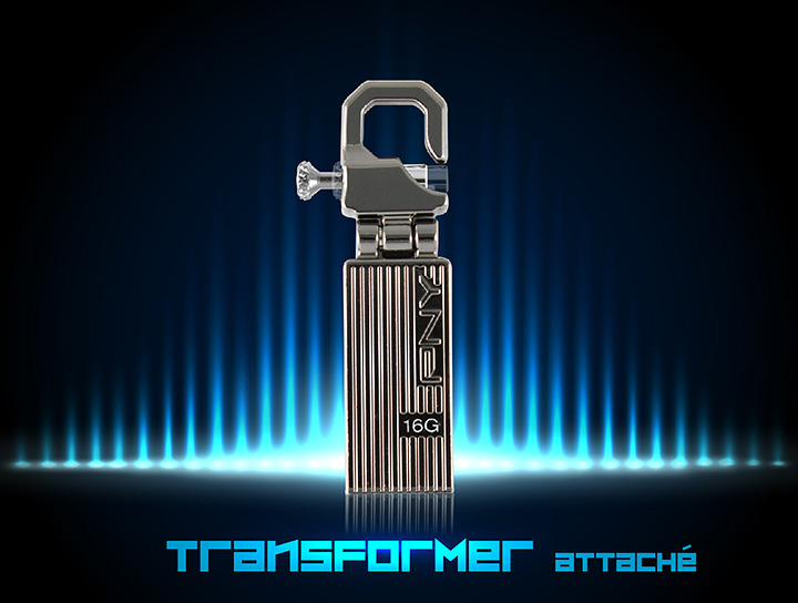Transformer Attachéแฟลชไดร์ฟ USB รุ่นล่าสุดจาก PNY มาพร้อมกับบอดี้ที่ผลิตจากโลหะสแตนเลส ปัดเงาผิวสัมผัสเงางามดูดีมีเกรดและแข็งแกร่ง ต่างจากแฟลชไดร์ฟ USB ทั่วไปที่ผลิตจากพลาสติก Transformer สามารถทนต่อการใช้งานได้ในทุกสภาวะแวดล้อม ทนต่อการชำรุด และเสียหาย Transformer Attachéถูกตกแต่งด้วยเส้นสายสามมิติ ดูเหมือนลูกฟูก แสดงถึงความทนทาน และความมีสไตล์ได้อย่างลงตัว